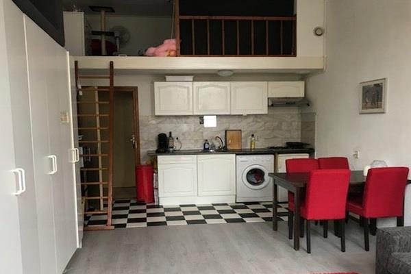badkamer voorzien van douche, toilet en wastafel, ruime woonkamer met twee grote ramen uitzicht op de Breestraat, trap naar slaapvide, open keuken voorzien van 4-pits gasfornuis met afzuigkap, koelkast en wasmachine.