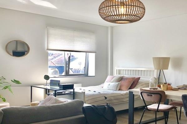 De studio beschikt over een ruim woon- slaapgedeelte met open keuken. De keuken is voorzien van een koelkast met vriesvak, vaatwasser, afzuigkap en inductie kookplaat.