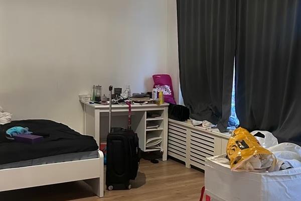 Gelegen aan de achterzijde op de eerste verdieping; gerenoveerde keuken; woon-/slaapkamer en een balkon. Keuken voorzien van alle gemakken zoals een elektrische kookplaat, koelkast en luxe spoelbak. Badkamer en toilet zijn separaat gescheiden en worden gedeeld met 2 huisgenoten