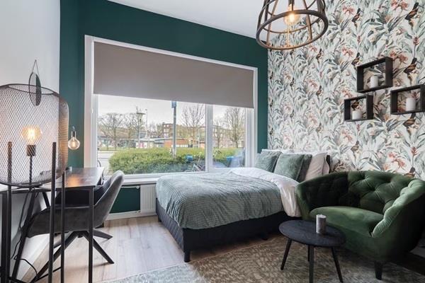 De studio bevindt zich op de begane grond aan de achterzijde van het pand. De studio is ruim en beschikt over een eigen keuken en badkamer. Het toilet en de wasruimte met wasmachine worden gedeeld met 1 andere persoon. Ideaal!