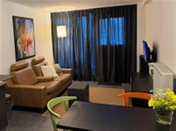 Deze studio heeft een gezellige woonkamer met open keuken die voorzien is van een vaatwasser, oven, magnetron en koelkast met vriesvak.