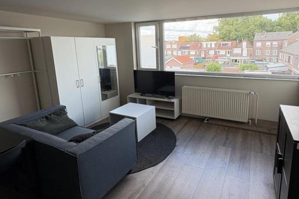 Op de bovenste verdieping van een studenten aan de Molenstraat in Tilburg bieden we de volgende ruime studio met eigen badkamer, douche, wasbak toilet aan.