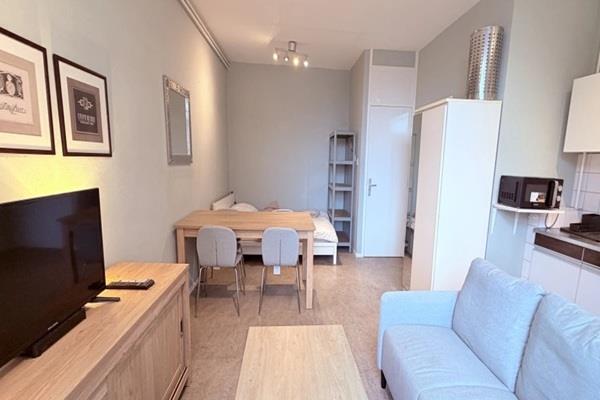 Gezamenlijke entree met trapopgang naar de studio. De woonruimte heeft een prettige lichtinval en is ingericht met een bankstel, dressoir, televisie, eettafel met stoelen, een tweepersoonsbed en een linnenkast. De open keuken beschikt over een koelkast met vriesvak, afzuigkap, spoelbak en een 4-pits gaskookplaat. De betegelde badkamer is voorzien van een douche, wastafel met spiegel en toilet.