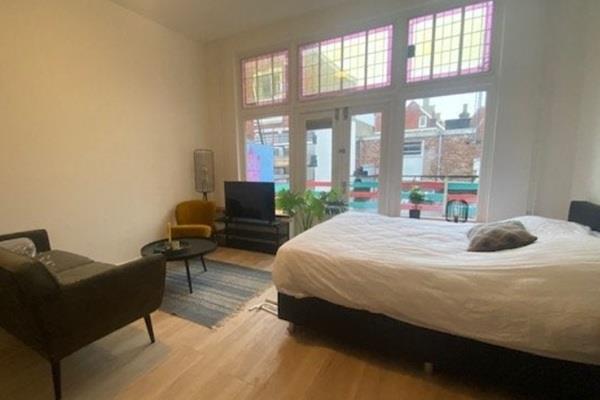Voorzien van een heerlijk ruim (privé) dakterras. De studio is onlangs geheel verbouwd en voorzien van nieuwe keuken (met koelkast en vaatwasser), en badkamer met douche, wastafel en toilet. Er ligt een eikenkleurige laminaatvloer in de studio.