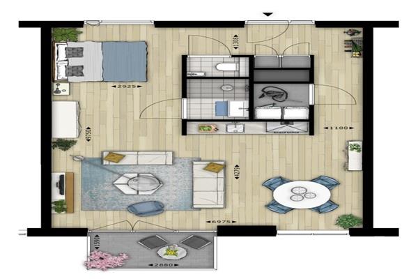 Een moderne PVC-vloer en luxaflex raamdecoratie