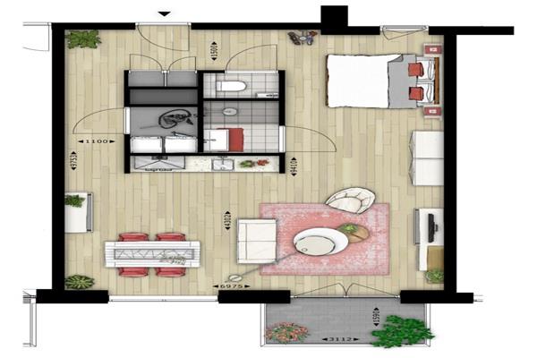 Een strakke PVC-vloer en luxaflex raamdecoratie