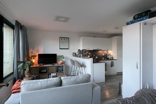 In de studio staat een innovatieve bedkast. Dit praktische vouwbed zorgt ervoor dat je overdag extra leefruimte hebt en ’s avonds comfortabel slaapt. Een slimme oplossing die perfect past bij modern wonen.