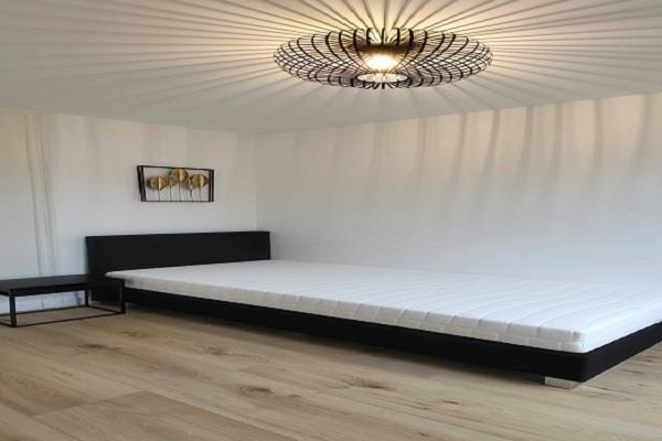 Mooie keuken met koelkast, magnetron, oven, inductiekookplaat en wasmachine/droger.