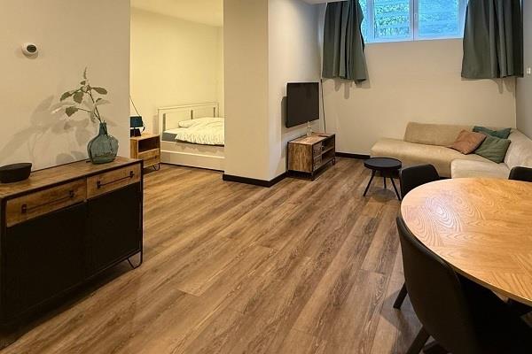 Deze studio is perfect ingedeeld voor maximaal comfort en praktisch gebruik. Bij binnenkomst kom je in de woon- en slaapruimte. De open keuken bevindt zich aan de ene kant van de kamer, met moderne apparatuur zoals een kookplaat, afzuigkap, en voldoende opbergruimte voor je keukengerei.