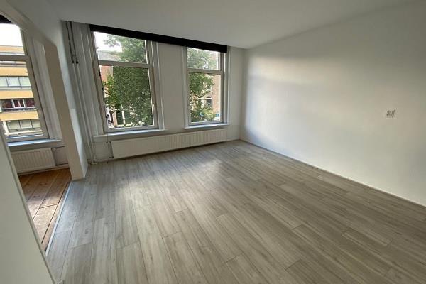 De lichte woon-/slaapkamer beschikt over een open keuken.