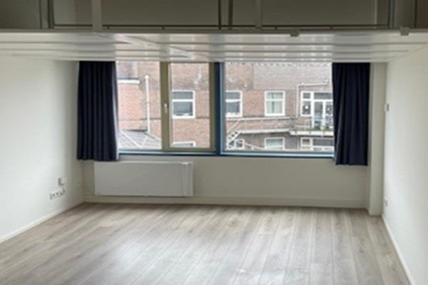 Ruime woonkamer met hoge plafonds, met hoogwaardige laminaat vloerafwerking, veel lichtinval, ruim voldoende stopcontacten, kunststof kozijnen met dubbel glas en gordijnen.