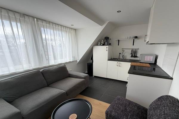 De studio beschikt over een eigen keuken/woonkamer/slaapkamer - uitgerust met een koel-vries combinatie, inductiekookplaat en afzuiging. Het beschikt over een ruime badkamer met toilet waar ook de aansluiting van de wasmachine is voorzien.