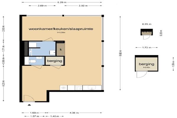 Deze loft is gelegen op de eerste etage. Bij binnenkomst tref je de berging en het separate toilet. De open keuken is voorzien van inbouwapparatuur. Vanuit het woon-/slaapgedeelte kom je bij de badkamer welke beschikt over een wastafel, inloopdouche en wasmachine aansluiting.