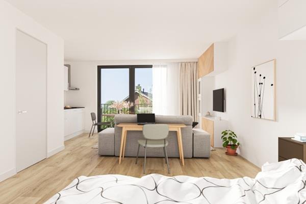 Het betreft een compact en slim ingedeelde studio van circa 32m², voorzien van een moderne badkamer met douche, toilet en wastafel, een complete keuken en een PVC-vloer. Het beschikt over een gezamenlijke buitenruimte.