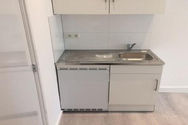De semi- studio is gelegen op de eerste etage en heeft een kitchenette met koelkast en kastruimte. Tevens beschikt deze woonruimte over een eigen badkamer. Deze is voorzien van een wastafel, douche en toilet. Het woongedeelte is opgedeeld in 2 delen. Waardoor je een aparte slaapkamer kan creeeren.