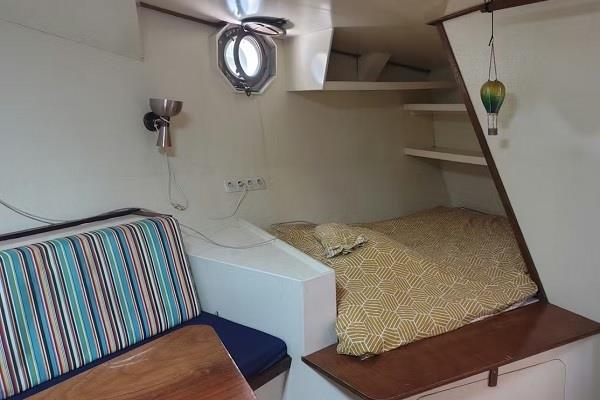 De studio bevindt zich aan de voorzijde van een schip. Twee gedeelde badkamers bevinden zich buiten de studio. De badkamers worden gedeeld met de huurder van de andere studio. Er is een wasmachine die gebruikt kan worden. De eigenaar woont in het achterste gedeelte van het schip.