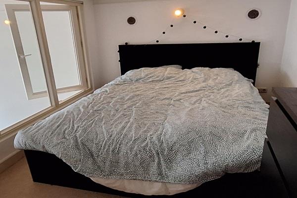 Indeling: Gezamenlijke entree met toegang naar de woonruimte. We betreden het in de woonkamer met fantastisch hoge ramen met zicht op de straat, hoog plafond met sierlijsten, sierschouw en laminaatvloer. Via een open trap bereikt u een vide met slaapgedeelte (plafondhoogte 180 cm.), gesitueerd boven de keuken. Hier is een glazenwand geplaatst en is plek voor een tweepersoonsbed. Onder deze ruimte is een volledige ingerichte keuken geplaatst voorzien van o.a. vaatwasser, 4 pits gaskookplaat, afzuigkap en koelkast. Midden in de keuken staat een barretje; gezellig bij het koken.