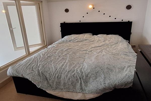 Indeling: Gezamenlijke entree met toegang naar de woonruimte. We betreden in de woonkamer met fantastisch hoge ramen met zicht op de straat, hoog plafond met sierlijsten, sierschouw en laminaatvloer. Via een open trap bereikt u een vide met slaapgedeelte (plafondhoogte 180 cm.), gesitueerd boven de keuken. Hier is een glazenwand geplaatst en is plek voor een tweepersoonsbed. Onder deze ruimte is een volledige ingerichte keuken geplaatst voorzien van o.a. vaatwasser, 4 pits gaskookplaat, afzuigkap en koelkast. Midden in de keuken staat een barretje; gezellig bij het koken.