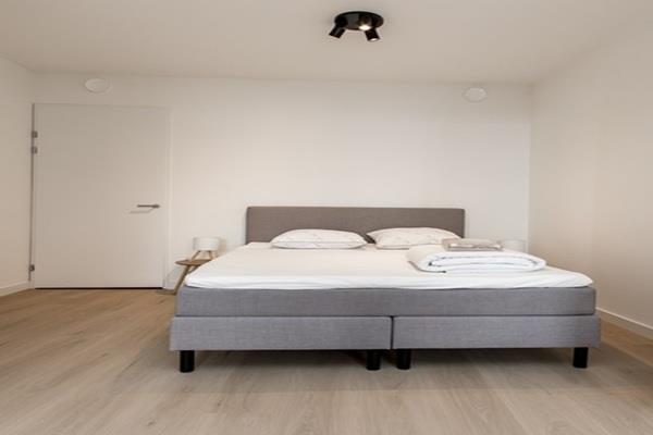 Er is ook een wasmachine en droger aanwezig. De badkamer heeft een inloopdouche, wastafel en toilet. De slaapkamer heeft een tweepersoonsbed en een grote kledingkast.