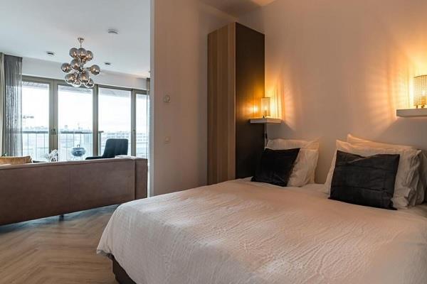 Entree van de naar de hal met een deur naar de ruime berging met wasmachine. Deze ruimte is tevens direct toegankelijk van uit de algemene gang. Separate W.C., volledig ingerichte Bulthaupt keuken met inbouw apparatuur en keukengerei, lichte sfeervolle woonkamer met eetgedeelte en TV/zitgedeelte en een zonnig balkon met uitzicht op Scheveningen. Via de woonkamer is er toegang tot de slaapkamer. De luxe badkamer heeft een inloop regendouche, wastafel meubel, verwarmde ronde designspiegel en handdoekradiator.