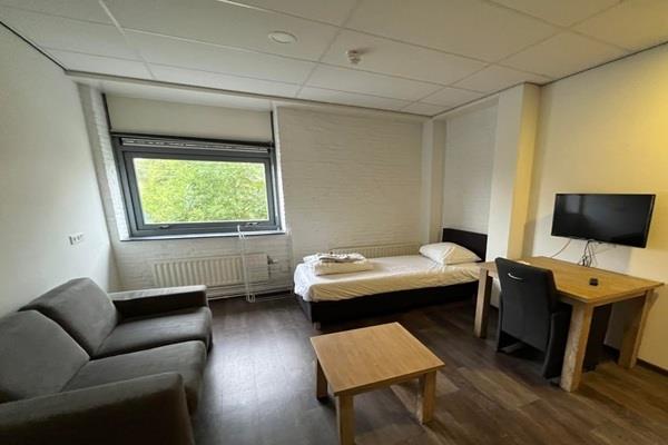 Indeling: Deze studio biedt een comfortabele leefruimte, perfect voor tijdelijk wonen. De studio is voorzien van een eettafel, een gezellige bank, een televisie, een bed en een kledingkast, zodat je je snel thuis zult voelen. De eigen keuken is uitgerust met koelkast, magnetron een kookplaat. De badkamer is volledig ingericht met douche, toilet, wastafel, spiegel en opbergkastje voor extra bergruimte.