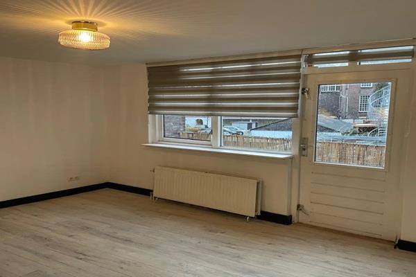 De hal geeft toegang tot de badkamer en de L- vormige studio met keuken/ living welke toegang geeft tot het balkon aan de achterzijde.